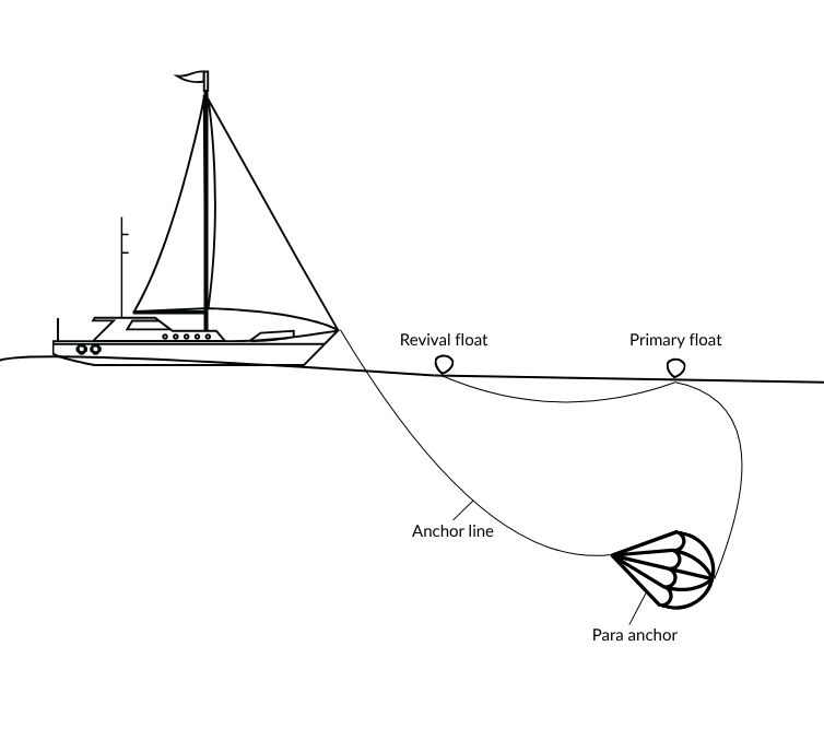 The device consists of a large-diameter parachute held underwater and connected to the bow by a long line. Once deployed, it creates massive drag, slowing or even stopping the boat from being blown off course. Crucially, it forces the bow to point directly into the wind and waves, reducing drift and increasing stability during adverse weather.